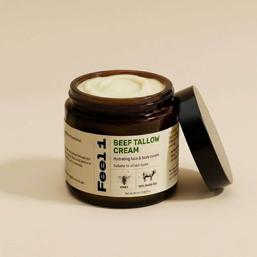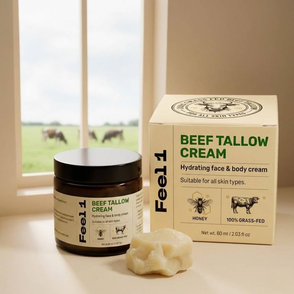 Rindertalg ist ein traditioneller, natürlicher Rohstoff, der seit Jahrhunderten in der Hautpflege verwendet wird. Schon unsere Vorfahren nutzten ihn, um trockene und beanspruchte Haut zu schützen und zu pflegen. Seine einzigartige Zusammensetzung aus Vitaminen und essenziellen Fettsäuren ähnelt den natürlichen Lipiden unserer Haut – deshalb wird er so gut aufgenommen und sorgt für spürbar glatte, geschmeidige Haut. Heute erlebt Rindertalg eine Renaissance als nachhaltiger, hochwirksamer Inhaltsstoff in moderner Naturkosmetik.
