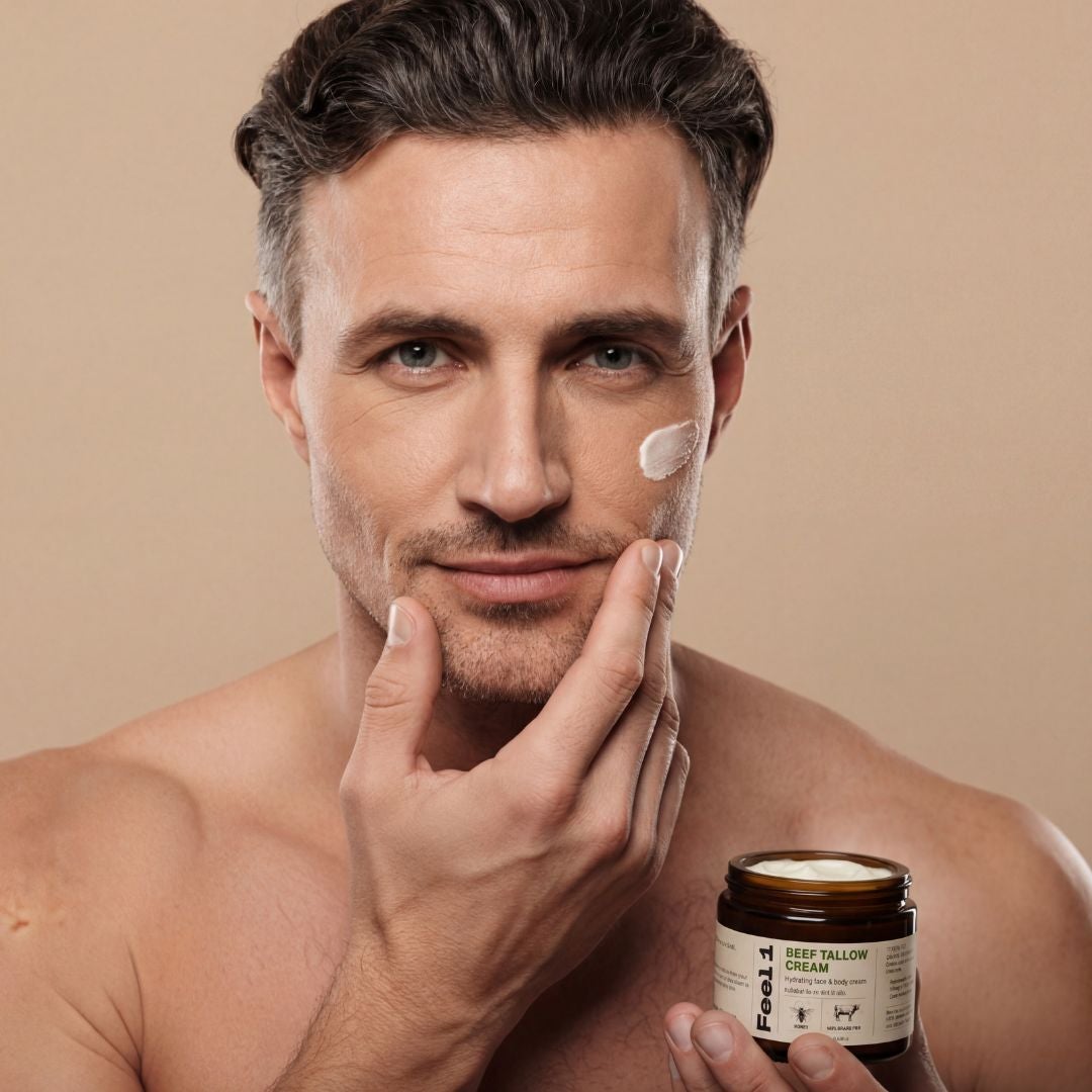 Rindertalg ist ein traditioneller, natürlicher Rohstoff, der seit Jahrhunderten in der Hautpflege verwendet wird. Schon unsere Vorfahren nutzten ihn, um trockene und beanspruchte Haut zu schützen und zu pflegen. Seine einzigartige Zusammensetzung aus Vitaminen und essenziellen Fettsäuren ähnelt den natürlichen Lipiden unserer Haut – deshalb wird er so gut aufgenommen und sorgt für spürbar glatte, geschmeidige Haut. Heute erlebt Rindertalg eine Renaissance als nachhaltiger, hochwirksamer Inhaltsstoff in moderner Naturkosmetik.